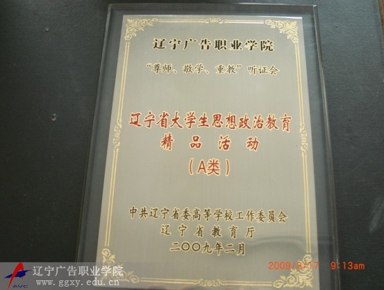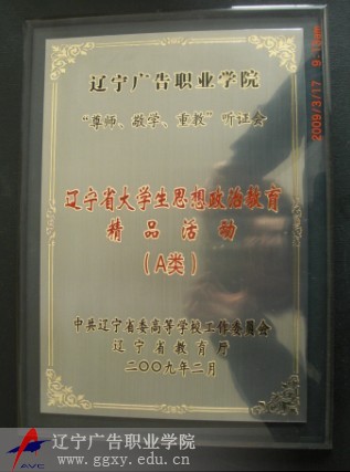 根據(jù)2008年中共遼寧省委高等學(xué)校工作委員會(huì)和遼寧省教育廳“關(guān)于開展評(píng)選第四批遼寧省大學(xué)生思想政治教育精品活動(dòng)”的文件精神,我院經(jīng)過積極的宣傳動(dòng)員和撰寫申報(bào)材料,將“‘尊師、敬學(xué)、重教’聽證會(huì)”作為校級(jí)精品活動(dòng)推薦上報(bào)。經(jīng)過評(píng)委會(huì)的評(píng)選,我院“‘尊師、敬學(xué)、重教’聽證會(huì)”獲得第四批遼寧省大學(xué)生思想政治教育精品活動(dòng)(A類)獎(jiǎng)項(xiàng)。本次活動(dòng)全省共有34所高校獲獎(jiǎng),其中只有5所高職院校,而我院是其中的一所。