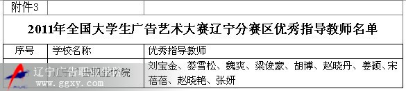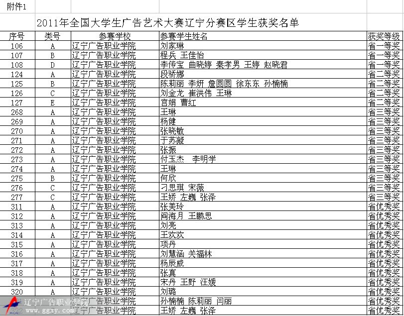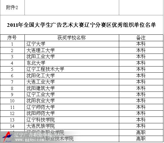 根據(jù)教育部高教司《關(guān)于舉辦第四屆全國(guó)大學(xué)生廣告藝術(shù)大賽的通知》(教高司函[2010]251號(hào))和《遼寧省教育廳辦公室關(guān)于舉辦第四屆遼寧省大學(xué)生廣告藝術(shù)大賽暨第四屆全國(guó)大學(xué)生廣告藝術(shù)大賽選拔賽的通知》(遼教辦發(fā)[2011]44號(hào))要求,由遼寧省教育廳主辦,遼寧大學(xué)承辦的第四屆遼寧省大學(xué)生廣告藝術(shù)大賽已完成了作品征集、作品展出、專(zhuān)家委員會(huì)評(píng)審等項(xiàng)工作。本屆大賽共征集35所學(xué)校的1226件作品,經(jīng)專(zhuān)家組評(píng)審,我廳同意,確定第四屆遼寧省大學(xué)生廣告藝術(shù)大賽獲獎(jiǎng)名單。