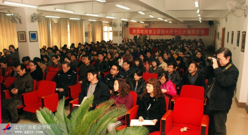 (上圖:遼寧省委宣傳部常務(wù)副部長(zhǎng)常衛(wèi)國(guó)來(lái)我院作十八大輔導(dǎo)報(bào)告)