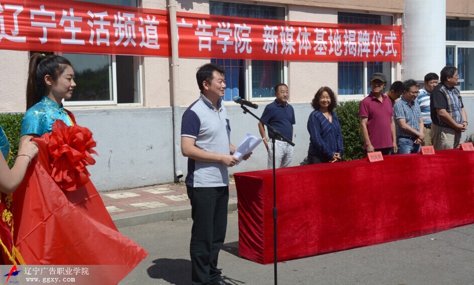 9月3日11:50,遼寧生活頻道廣告學(xué)院新媒體基地揭牌儀式于我院辦公樓門前隆重舉行,我院院長高凱征、副院長劉鳳娟參加了此次儀式,另有遼寧廣播電視臺生活頻道總監(jiān)左震、副總監(jiān)邱江、副總監(jiān)余洋、制片人劉恒國、新媒體事業(yè)部總制片人高松等貴賓出席了活動(dòng)。生活頻道記者富馨為本場儀式主持人。