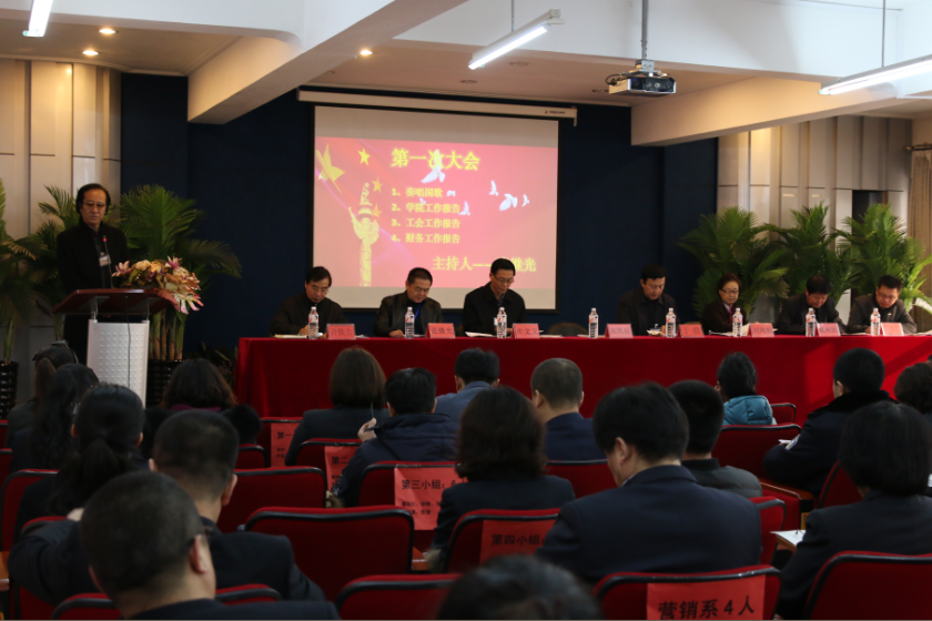 第一次大會上,高凱征董事長做學院工作報告,工會主席劉鳳娟做工會工作報告,財務(wù)處處長做財務(wù)工作報告。