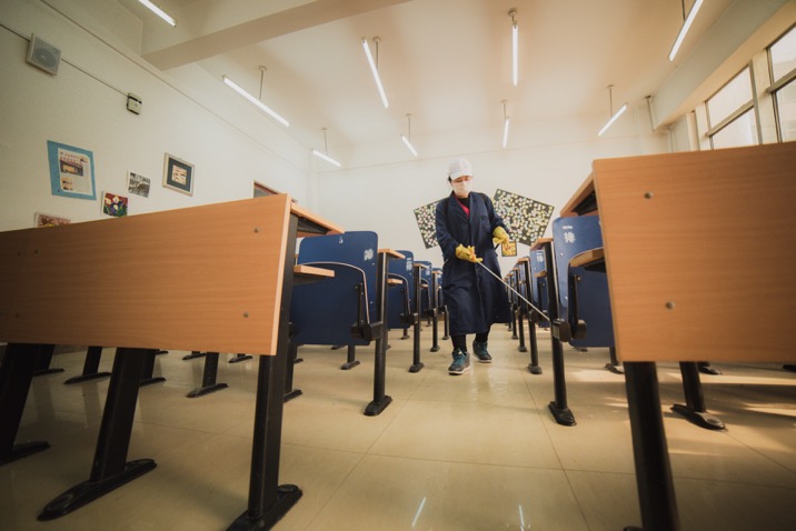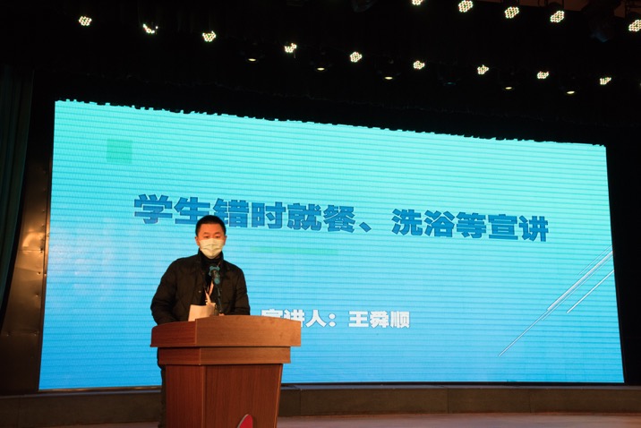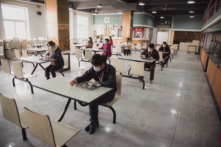 食堂采取錯時就餐、單向一人一座、保持1米以上距離的方式,并倡導(dǎo)學(xué)生自備餐具。食堂門口設(shè)立體溫檢測點,學(xué)生排隊檢測體溫后進(jìn)入食堂。同時設(shè)有工作人員對于因等候時間過長可能出現(xiàn)的焦躁情緒的學(xué)生進(jìn)行安撫和勸解。食堂每天在學(xué)生就餐結(jié)束后,進(jìn)行360度無死角全方位消毒。