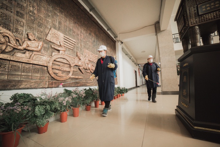 防疫消毒點,負(fù)責(zé)體溫監(jiān)測點和應(yīng)急隔離點的應(yīng)急消毒。