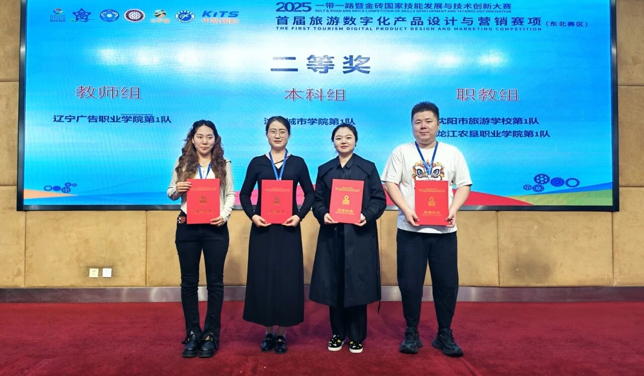 近日,遼廣院師生在“2025一帶一路暨金磚國家技能發(fā)展與技術(shù)創(chuàng)新大賽”首屆旅游數(shù)字化產(chǎn)品設(shè)計(jì)與營銷賽項(xiàng)(東北賽區(qū))中表現(xiàn)出色,斬獲多項(xiàng)榮譽(yù)。由旅游管理系教師賈婷婷、陳志斌、張書亞與通識(shí)文化教研部教師劉藝儒組成的教師團(tuán)隊(duì)榮獲教師組二等獎(jiǎng),并憑借優(yōu)異成績成功晉級(jí)全國總決賽。