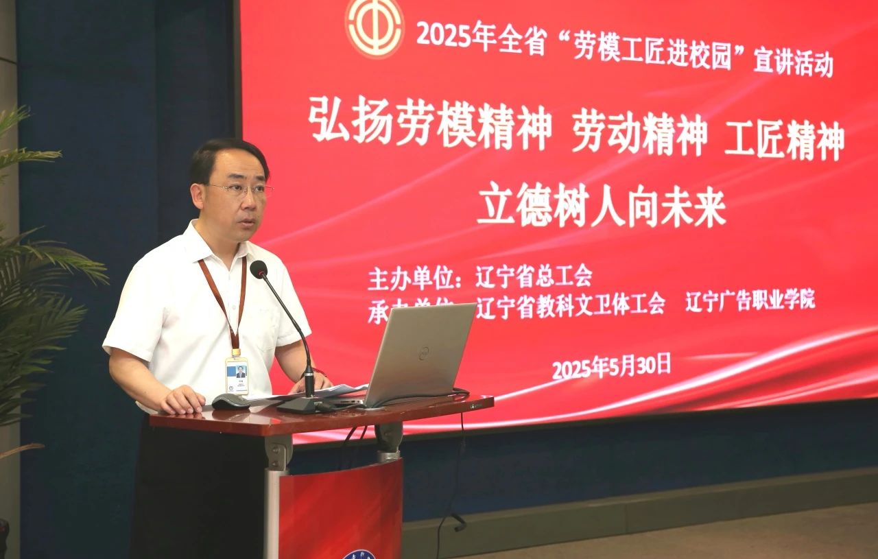 5月30日,由遼寧省總工會(huì)主辦,遼寧省教科文衛(wèi)體工會(huì)委員會(huì)、遼寧廣告職業(yè)學(xué)院共同承辦的2025年遼寧省“勞模工匠進(jìn)校園”示范宣講活動(dòng)在我校舉行。全國(guó)勞動(dòng)模范、中共黨的二十大代表洪家光同志為我校師生作報(bào)告。遼寧省教科文衛(wèi)體工會(huì)委員會(huì)副主席龐濤出席并致辭?;顒?dòng)由黨委書(shū)記蘇強(qiáng)主持。